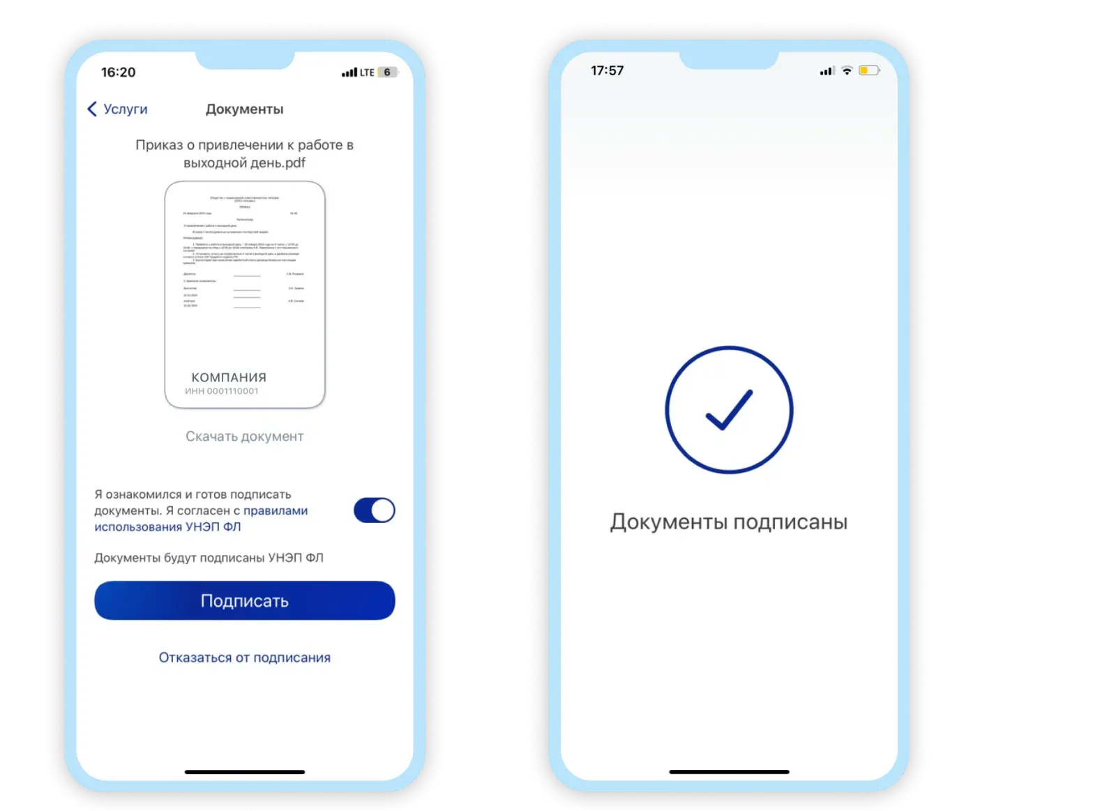 Каждый работник устанавливает на телефон приложение Госключ и бесплатно получает личную электронную подпись.